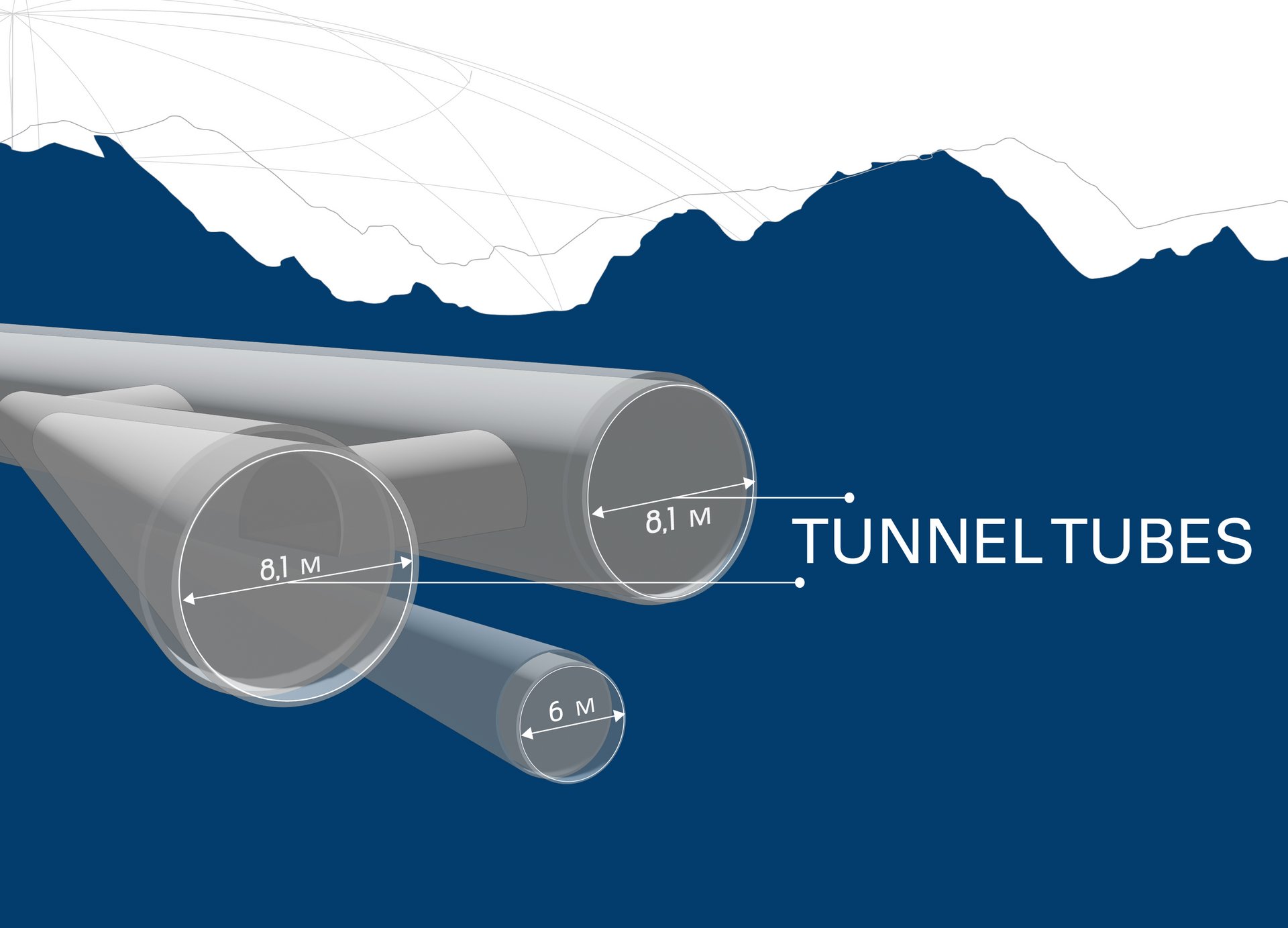 Smaller cross passages connecting the two main tubes are located every 333 m.