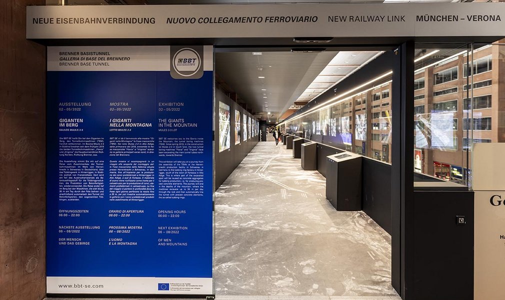 Seit vergangenem Sommer 2021 wird das Baugeschehen beim Projekt Brenner Basistunnel in großflächigen Bildern eindrucksvoll zur Schau gestellt. Die Ausstellungsfläche befindet sich auf der Südhälfte der Galerie am Innsbrucker Hauptbahnhof. Jeweils nach drei bis vier Monaten wird ein neuer Themenschwerpunkt präsentiert. Nun ist es wieder soweit: Diesmal können sich die BesucherInnen ein Bild von den beeindruckenden Vortriebswerkzeugen machen, welche die Tunnelröhren des BBT ausgehend von der Südtiroler Baustelle Mauls in Richtung Brenner, maschinell ausbrechen.