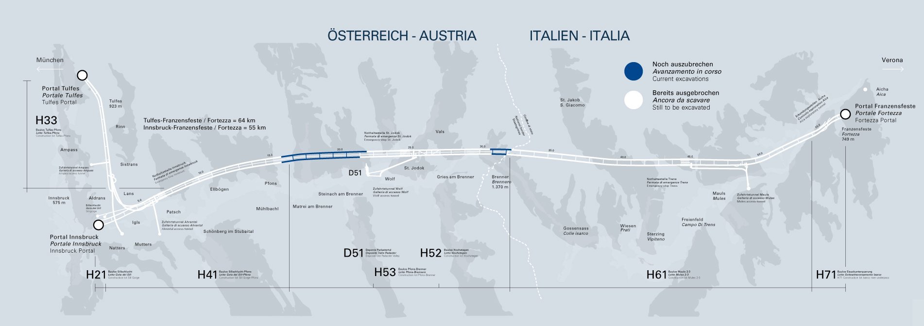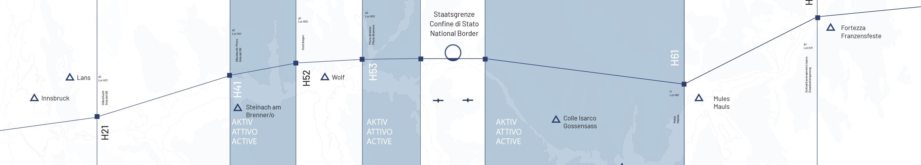 Derzeit gibt es drei aktive Baulose, von denen sich eines auf italienischem und zwei auf österreichischem Gebiet befinden.