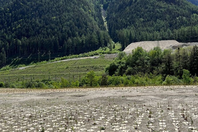 Die weitläufige Grünfläche in der Nähe von Franzensfeste lässt inzwischen kaum mehr erahnen, dass hier noch vor wenigen Jahren komplexe Tunnelbauarbeiten unter dem Fluss Eisack stattgefunden haben. Die Natur hat sich den Raum zurückerobert – unterstützt durch gezielte Renaturierungsmaßnahmen.